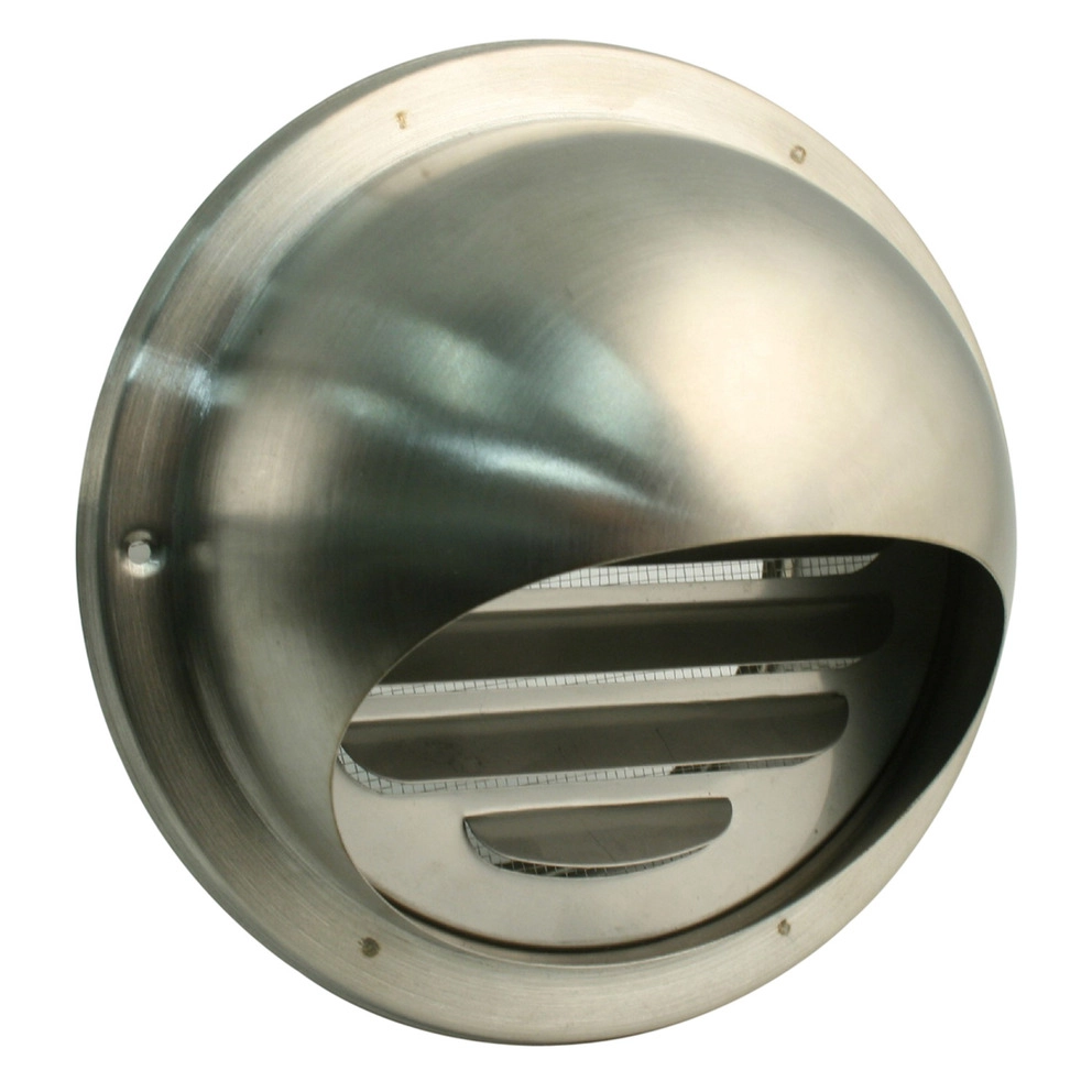 Ablufthaube Ø 150 mm aus Edelstahl, mit Fliegengaze, Rohranschluss Ø 100 mm