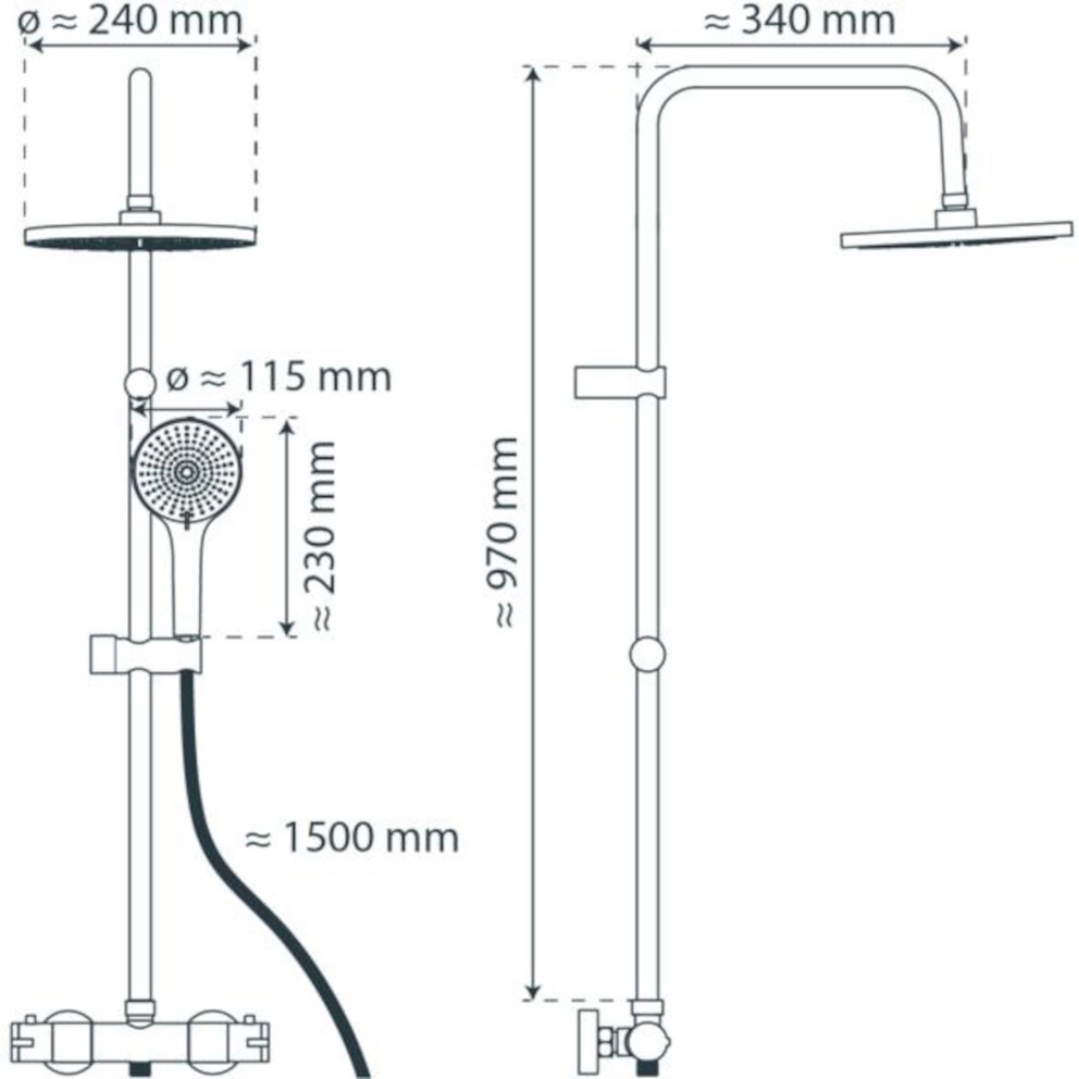 ADRIA Überkopfbrause-Set, Schwarz matt, mit Thermostatarmatur