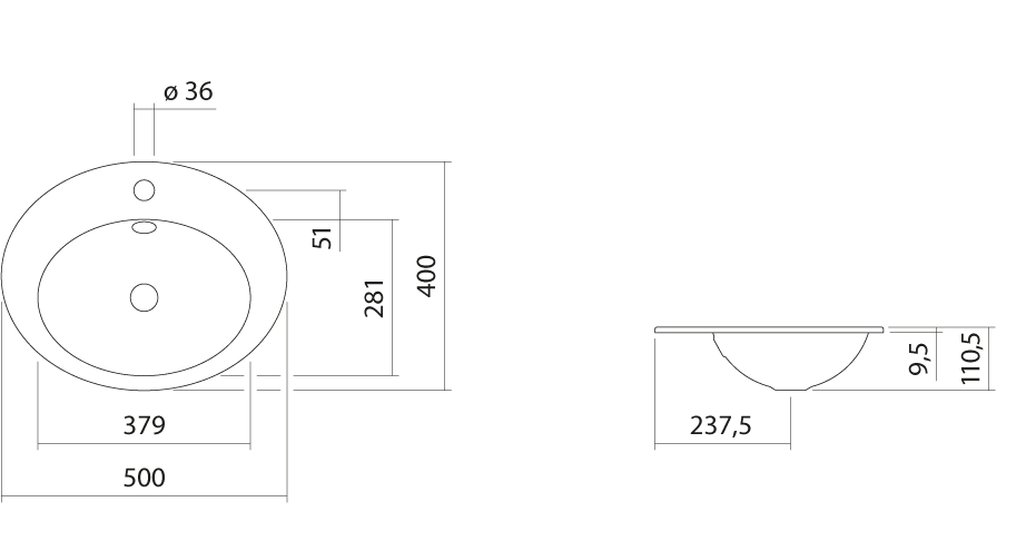 Einbaubecken oval
