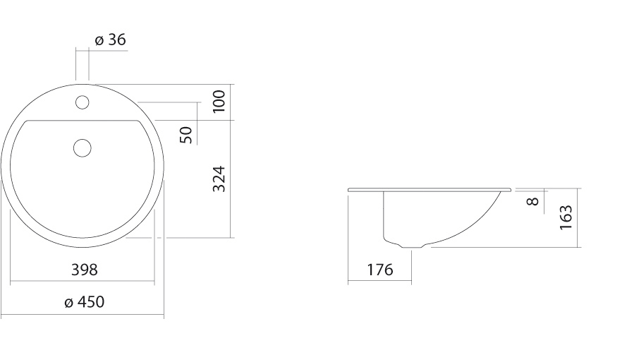 Innen und außen glasiert, mit Hahnlochbohrung, ohne Überlauf,