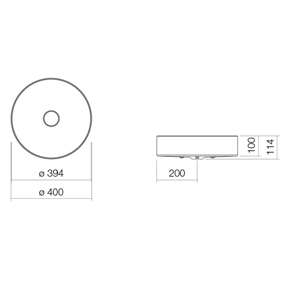 Schalenbecken, rund, Ø 400 mm, Höhe 114 mm, glasierter Stahl, ohne Hahnloch, ohne