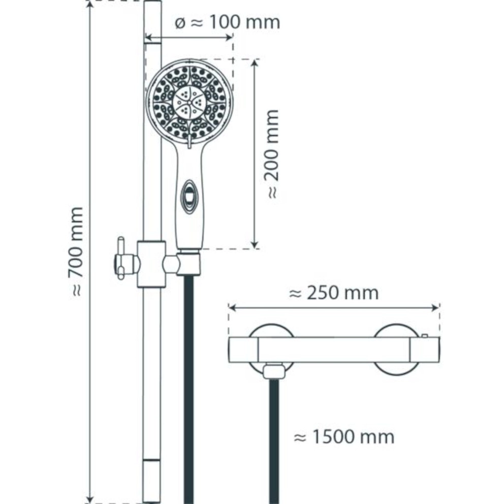 AQUA 2 SAVE Stangenbrause-Set, Chrom, mit Thermostatarmatur