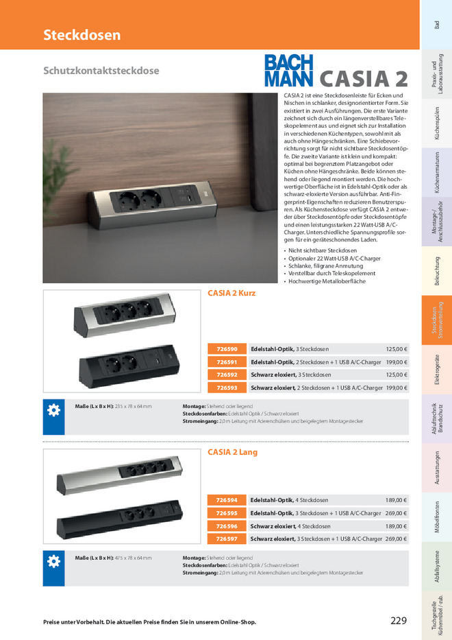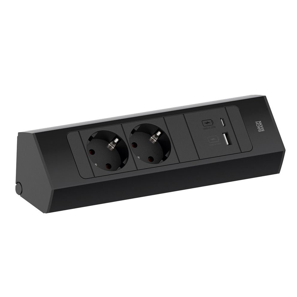 BACHMANN CASIA 2 Kurz Schwarz eloxiert, 2 Steckd., USB A/C