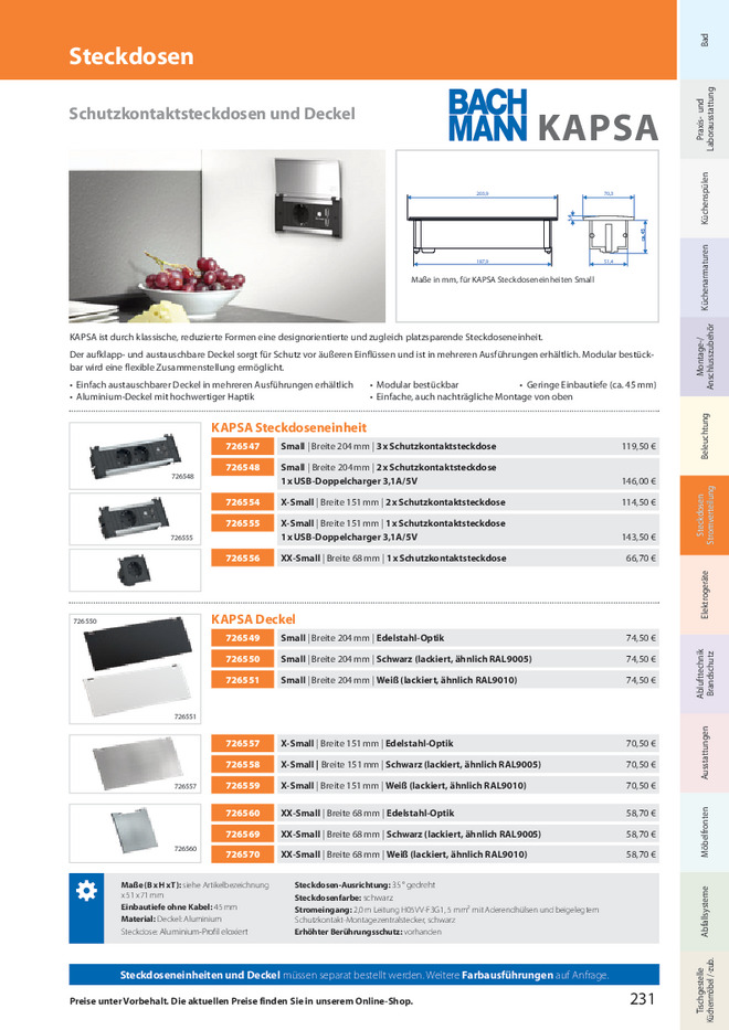zugleich platzsparende Steckdoseneinheit. Der aufklapp- und austauschbare