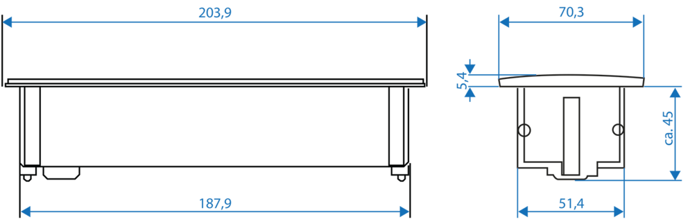 • Geringe Einbautiefe (ca. 45 mm)