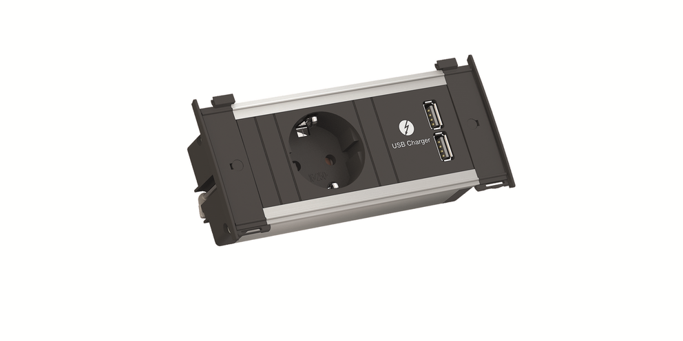zugleich platzsparende Steckdoseneinheit. Der aufklapp- und austauschbare