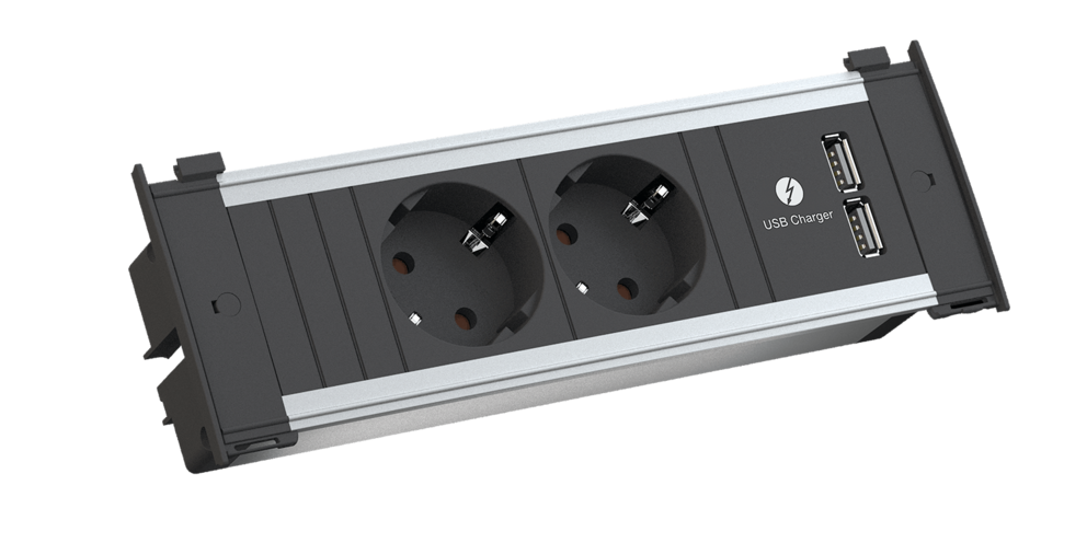 zugleich platzsparende Steckdoseneinheit. Der aufklapp- und austauschbare