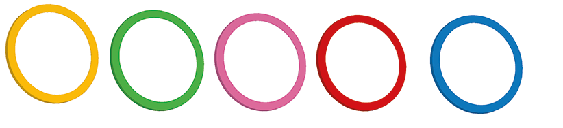 5 farbige Zierringe in den Farben gelb, grün, pink, rot und blau