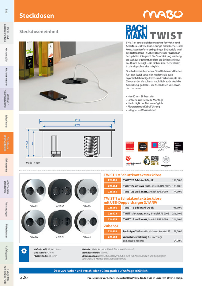 TWIST ist eine Steckdoseneinheit für Wohn- und Arbeitsumfeld wie Büro, Lounge oder Küche.