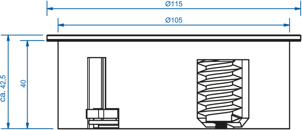 Die Stromleitung wird eng am Gehäuse geführt, so dass die Einbautiefe nur ca. 40 mm beträgt -