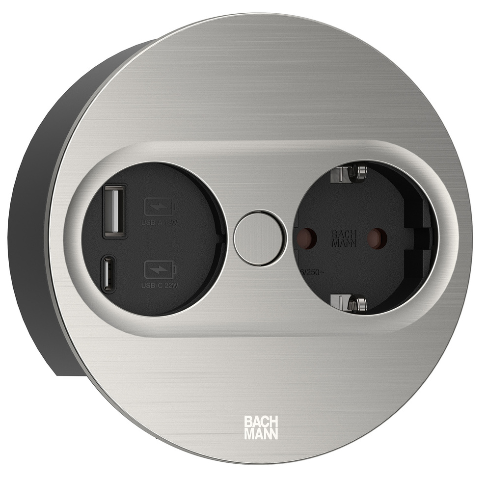 Material: Abdeckscheibe: Metall, Steckdose: Kunststoff