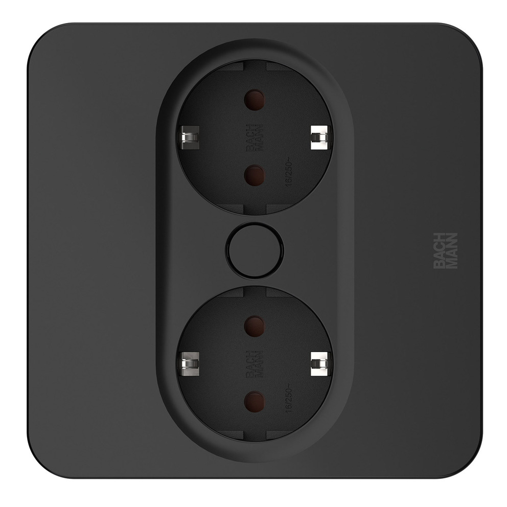 BACHMANN TWIST2, 2x Schuko-Steckdose, Schwarz matt, eckig