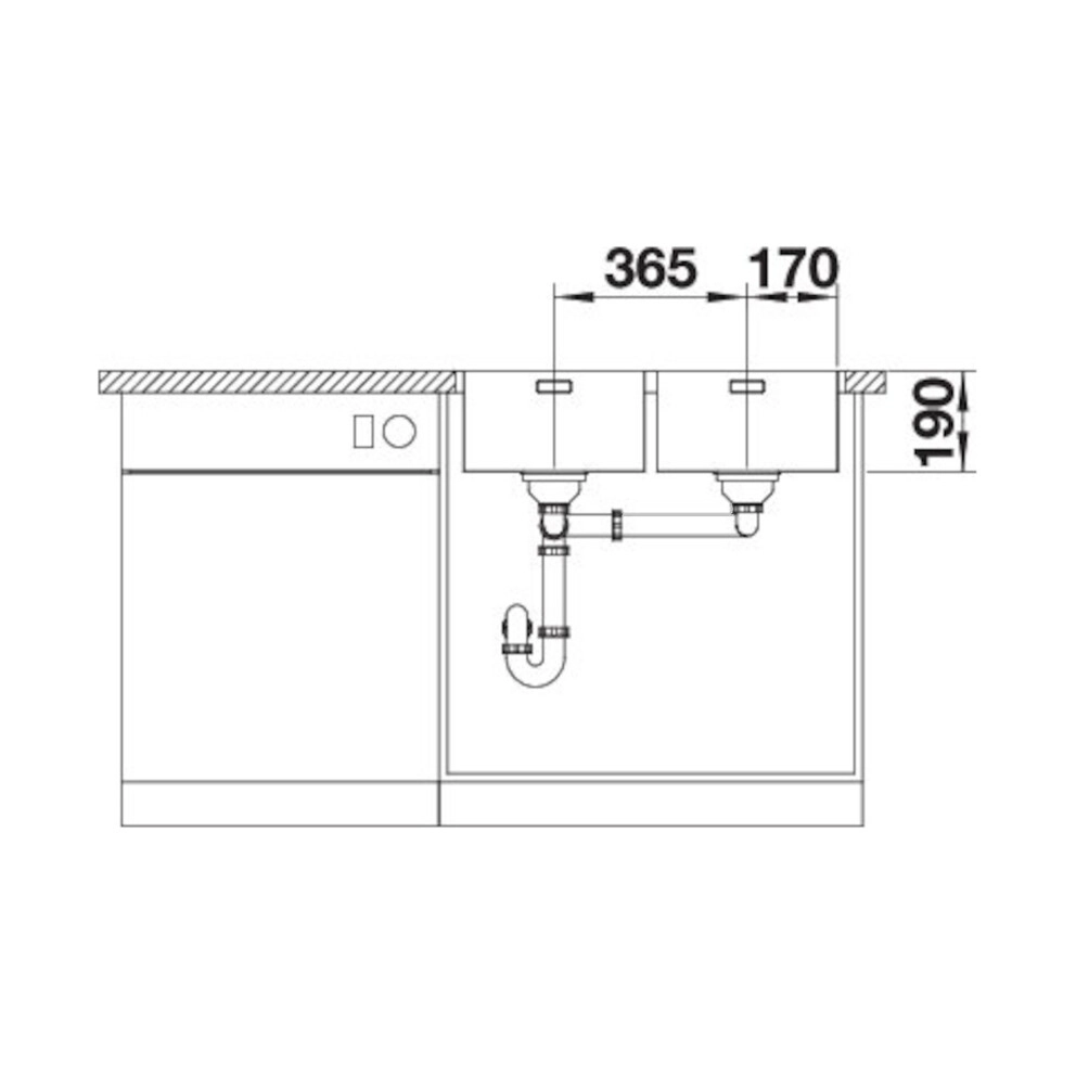 Ablaufgarnitur mit Raumsparrohr, 2 x 3 ½‘‘ InFino-Korbventil, Befestigungsset