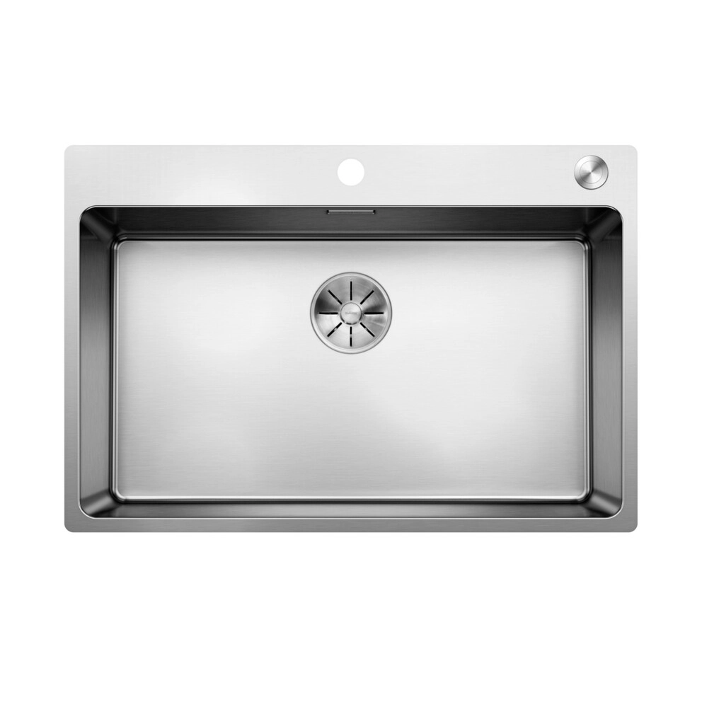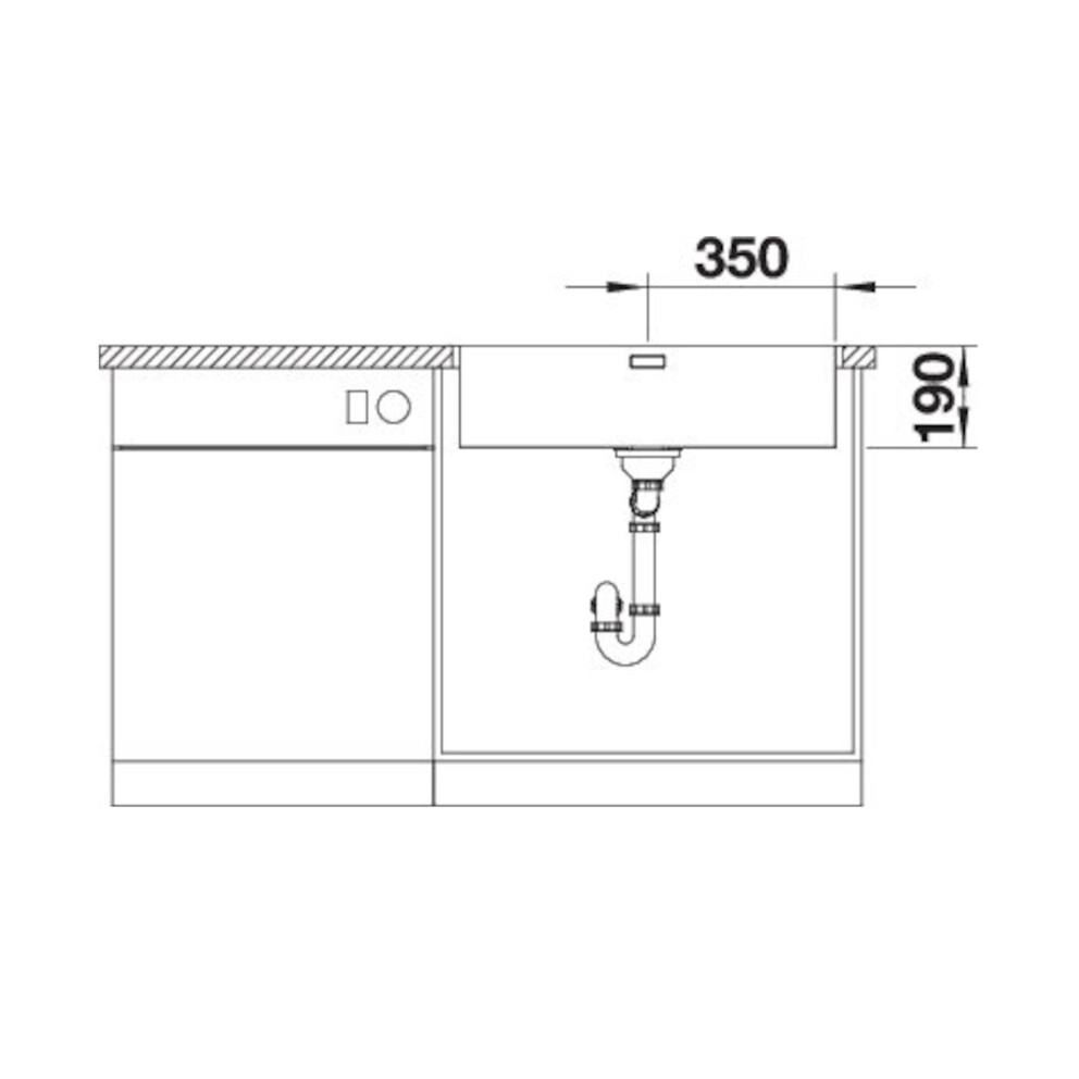 Elegant gestalteter Nassbereich mit integrierter Armaturenbank in nur einem Arbeitsplattenausschnitt.