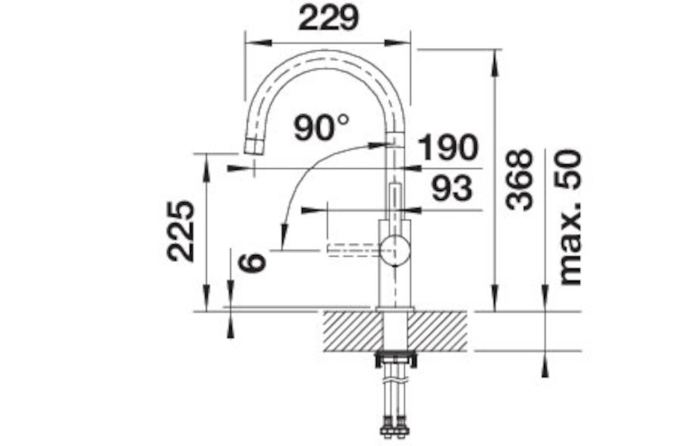 Bogenförmiger, hoher Auslauf für leichtes Befüllen von Töpfen und Vasen.