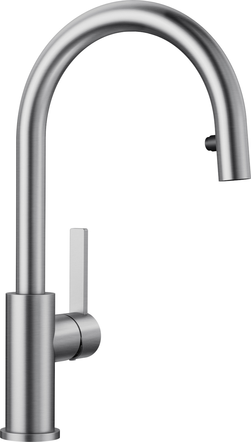 Hochwertige Ausführung in massivem Edelstahl, Oberfläche gebürstet. Klares Armaturendesign für moderne Küchen.