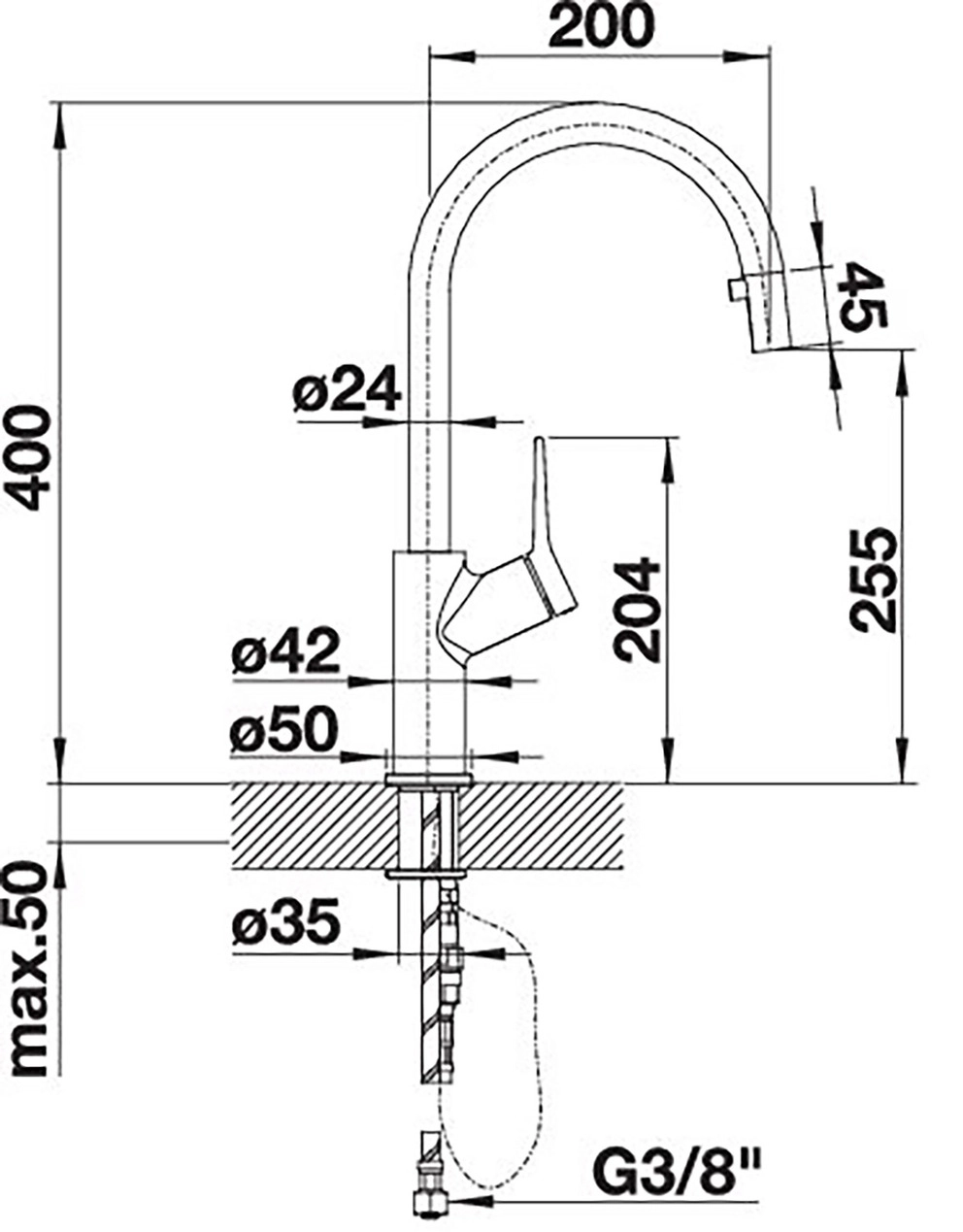 Ø 35 mm Armaturenbohrung erforderlich