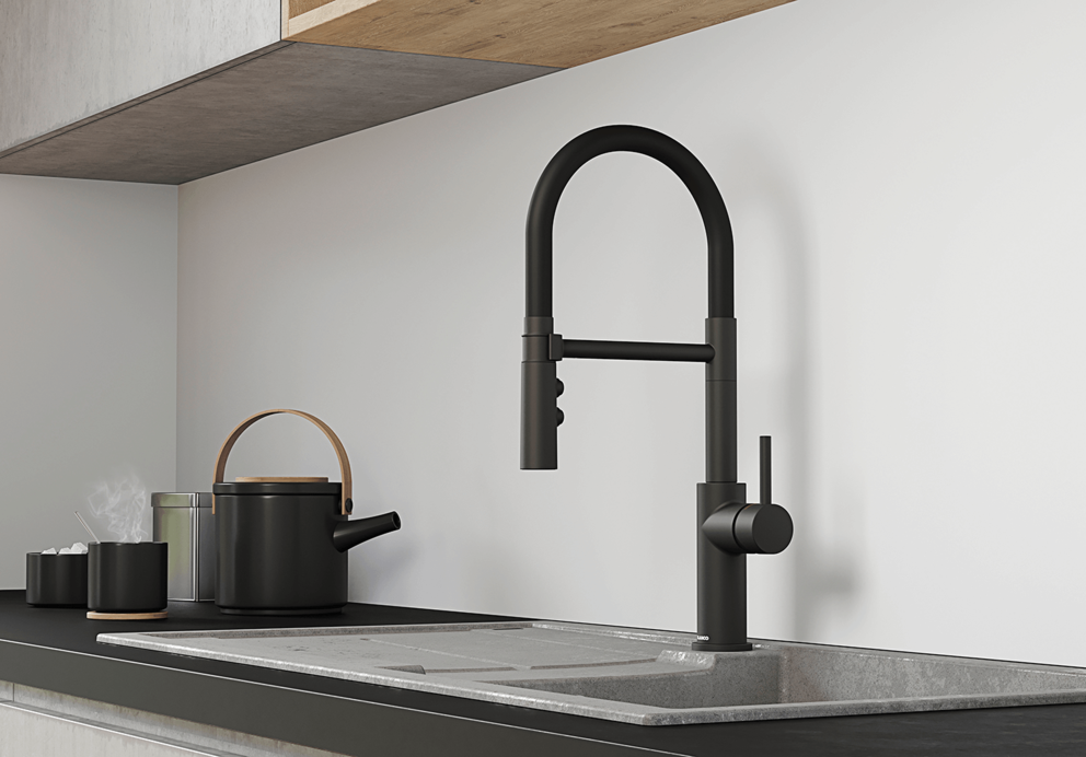 • Flexibler Auslauf (Edelstahlfeder) mit