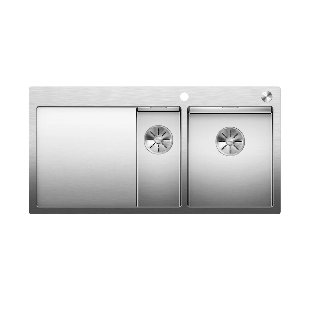 Ablaufgarnitur mit platzsparendem Rohr, Ablaufanschluss, 2 x 3 ½‘‘ InFino-Korbsieb mit Ablauffernbedienung(PushControl) für das Hauptbecken,