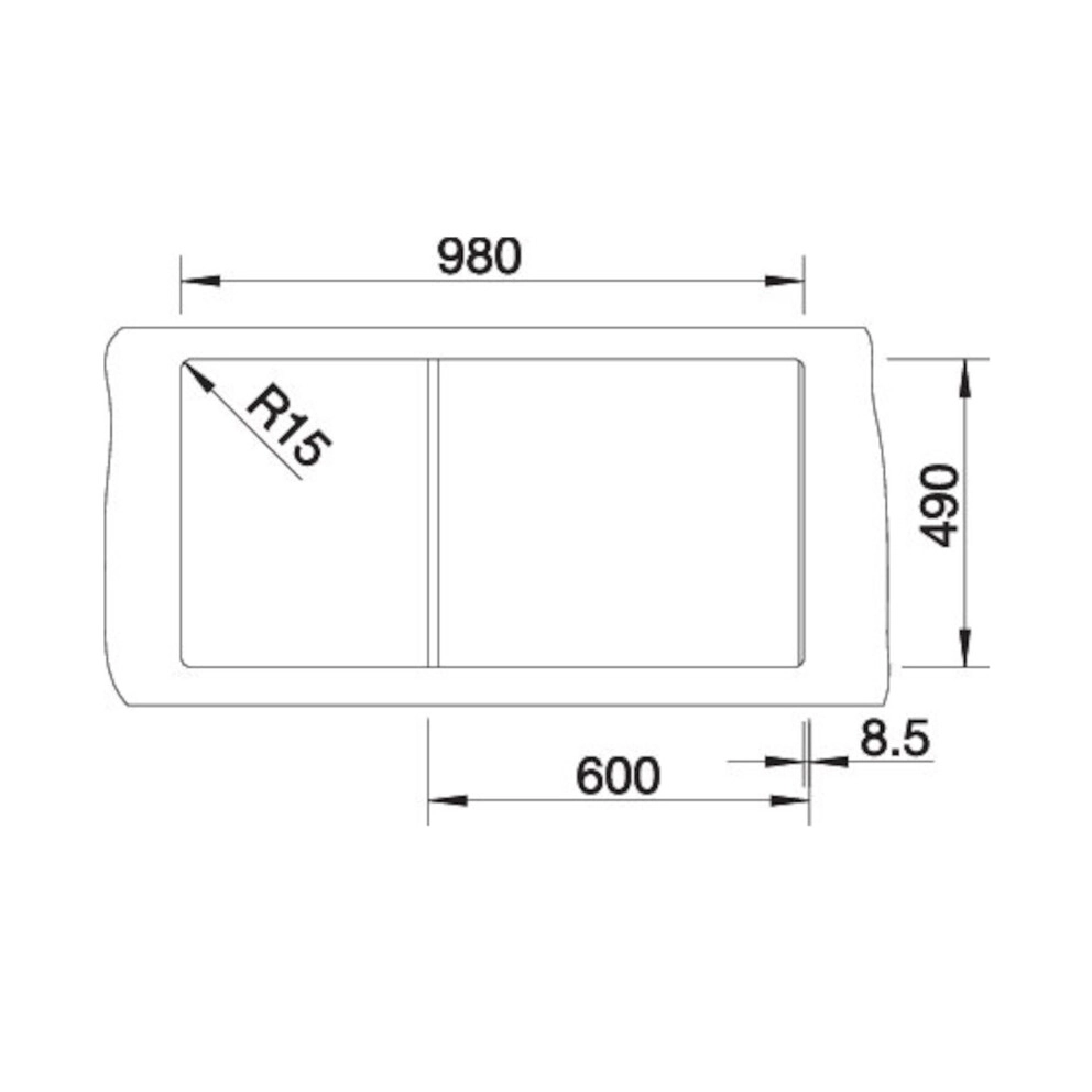 Einbauspüle mit fließenden Übergängen von Radien in Geraden. Elegant-pures Design mit prägnanten Eckradien von nur 10 mm.
