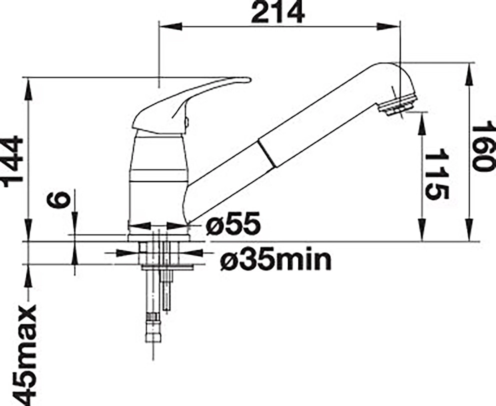 mit herausziehbarem Auslauf. Für kleine Spülen geeignet.