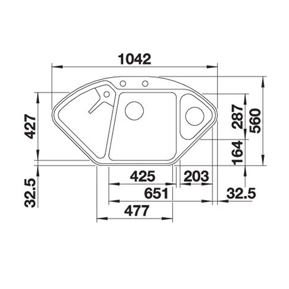 Ergonomische Anordnung von Becken, Zusatzbecken und Abtropffläche.Geräumiges Becken mit langer Beckendiagonale