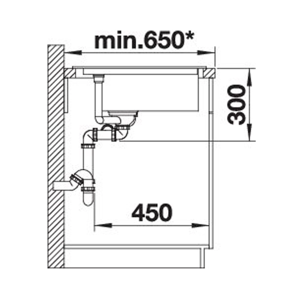 Ergonomische Anordnung von Becken, Zusatzbecken und Abtropffläche.Geräumiges Becken mit langer Beckendiagonale