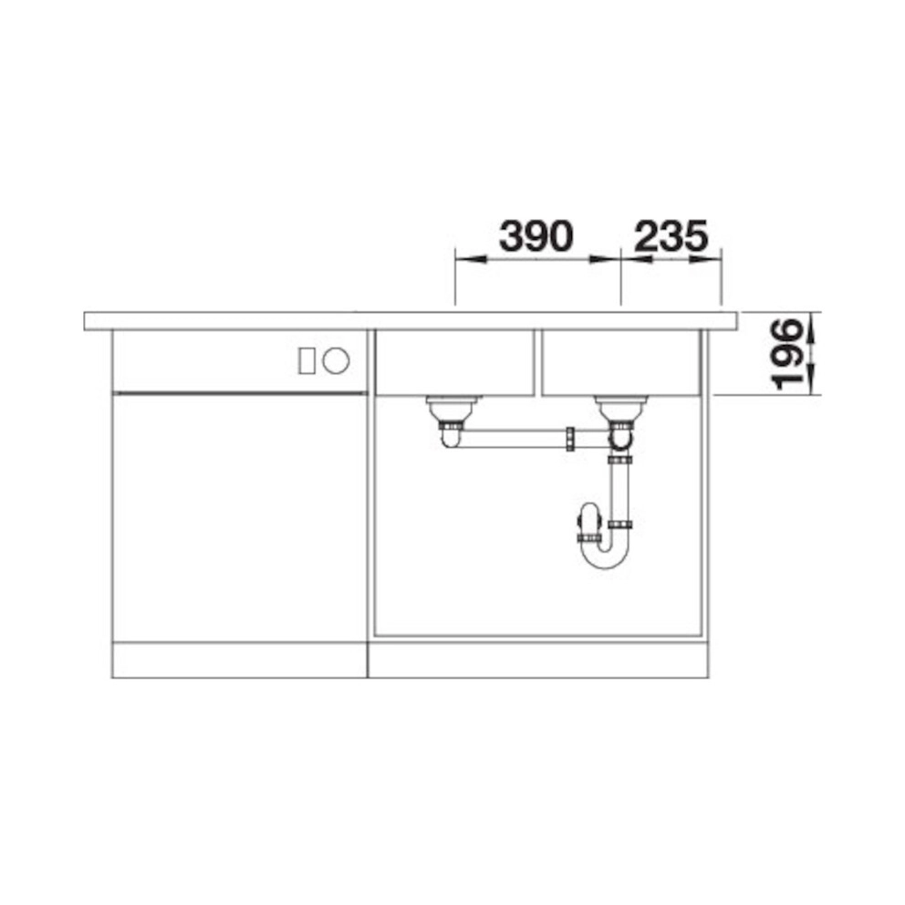 Ablaufgarnitur mit Raumsparrohr, 2 x 3 ½‘‘ InFino-Korbventil mit Ablauffernbedienung (Drehbetätigung) für 1 Becken.