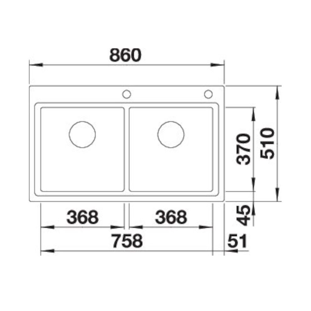 Geradlinige Becken mit elegantem 10 mm Eckradius. Großes Beckenvolumen und komplett nutzbare Bodenfläche.