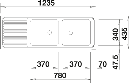 Beckengröße: 370 x 340 x 150 mm
