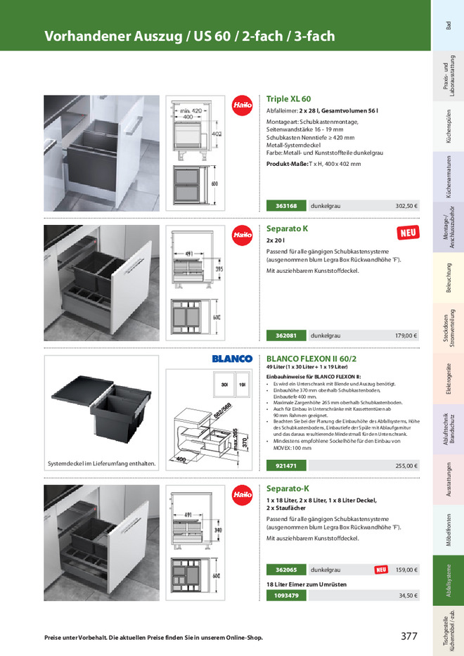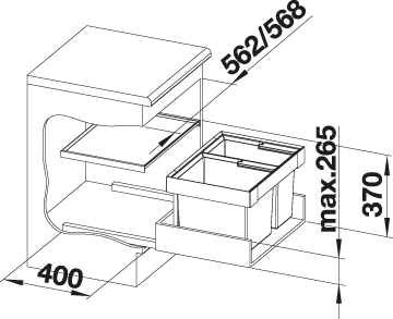 • Einbauhöhe 370 mm oberhalb Schubkastenboden,