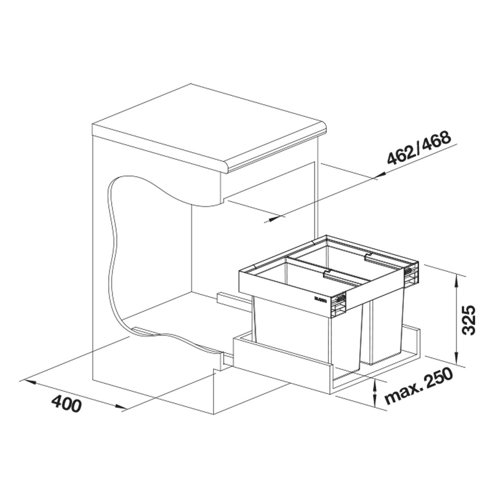 Einbauhöhe 325 mm über dem Schubladenboden, Einbautiefe 400 mm (innenmaße der Schublade
