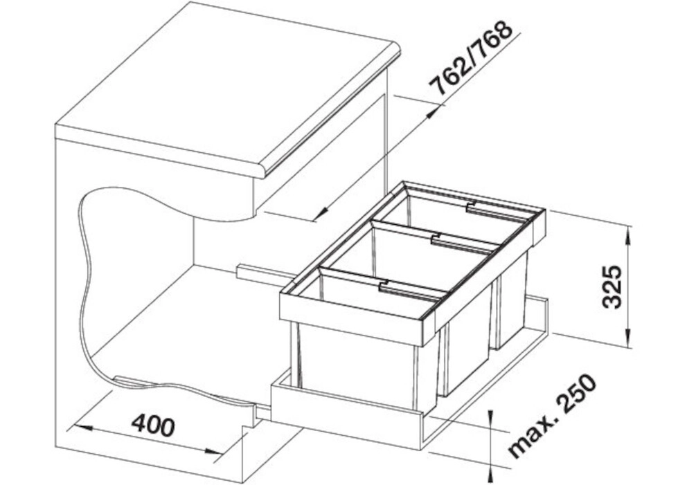 Für Unterschränke mit geteilten Schubladen und einer Breite von 50 bis 90 cm (dank reduzierter Einbauhöhe von 330 mm)
