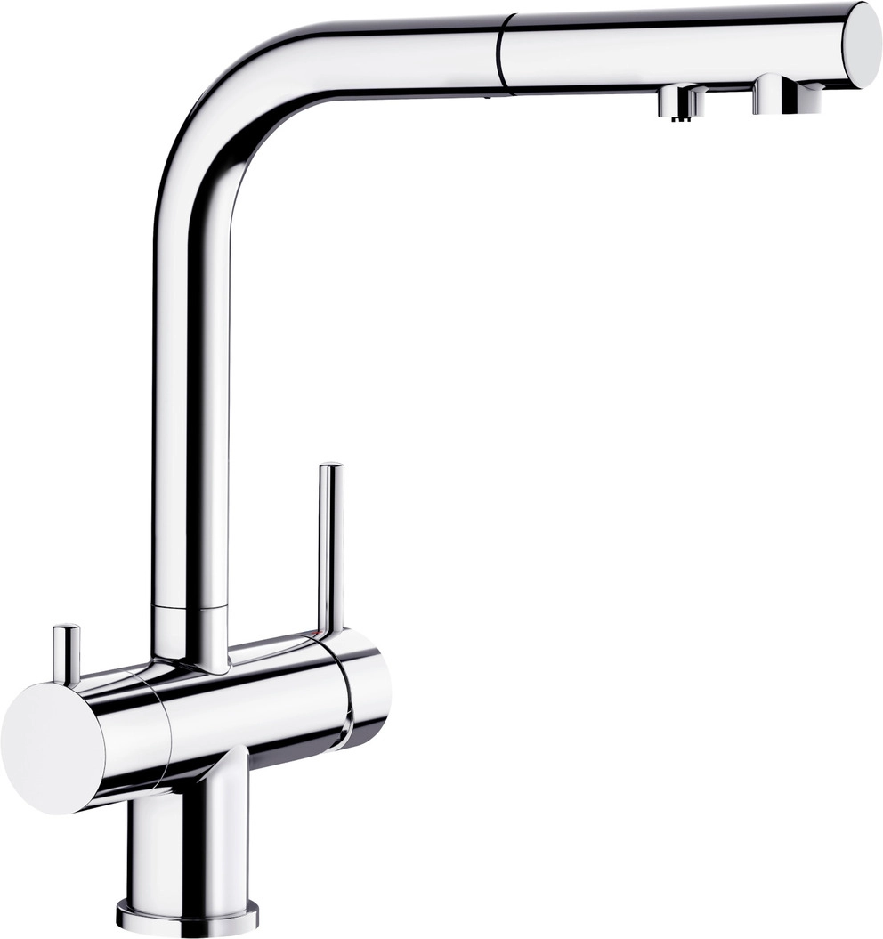 Komfortable 3-in-1-Armatur: Gefiltertes und ungefiltertes Wasser aus einem herausziehbaren Auslauf.