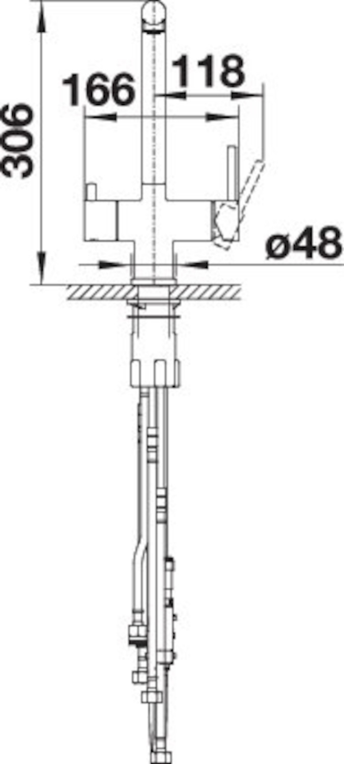 Platzsparend und praktisch: durch 3-in-1-Armatur keine zusätzliche Bohrung für die Entnahme von gefiltertem Wasser notwendig.