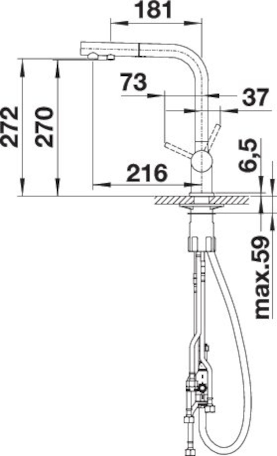 Platzsparend und praktisch: durch 3-in-1-Armatur keine zusätzliche Bohrung für die Entnahme von gefiltertem Wasser notwendig.