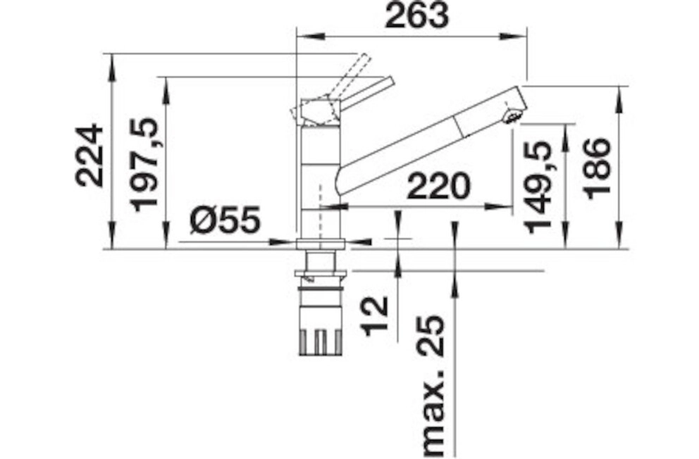 Geeignet für den Einbau unter dem Fenster. Schlanke Armatur in ästhetischem Design.