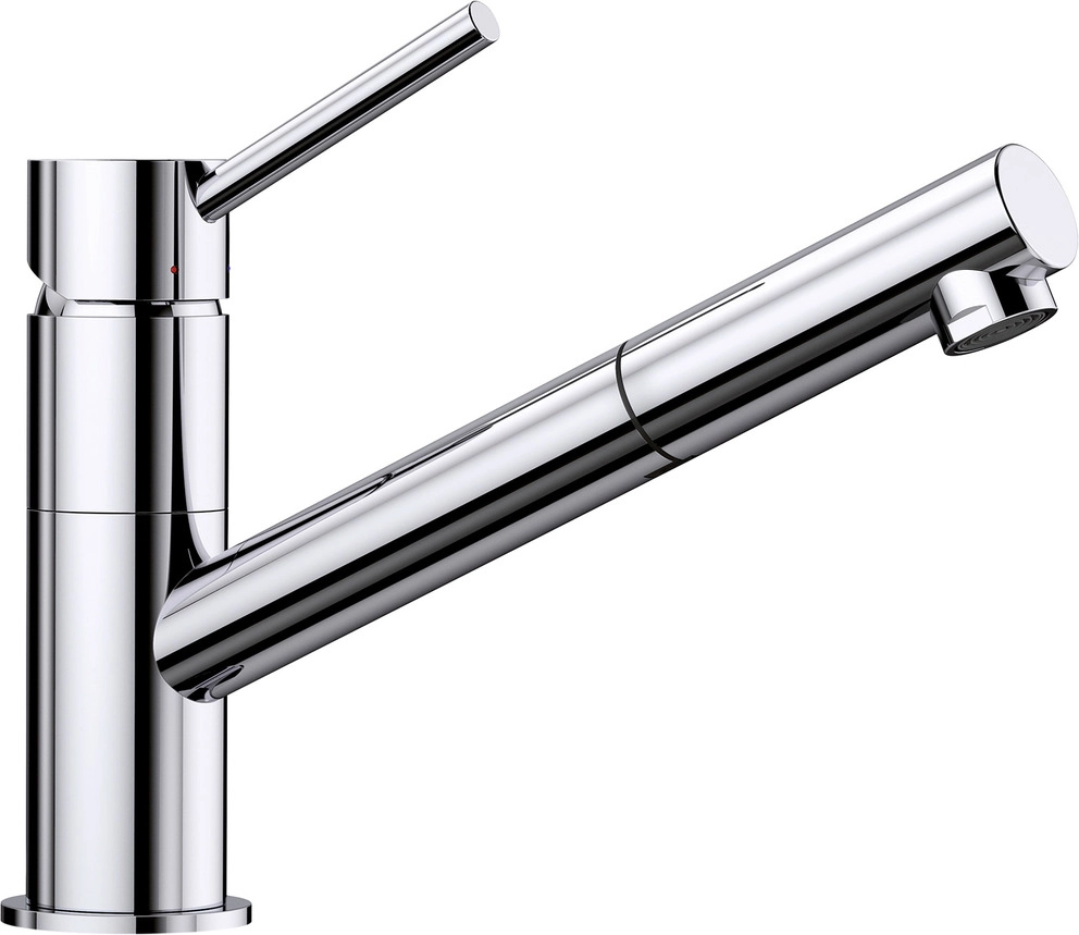 Schlanke Armatur in ästhetischem Design. Mit herausziehbarem Auslauf. Besonders für kompakte