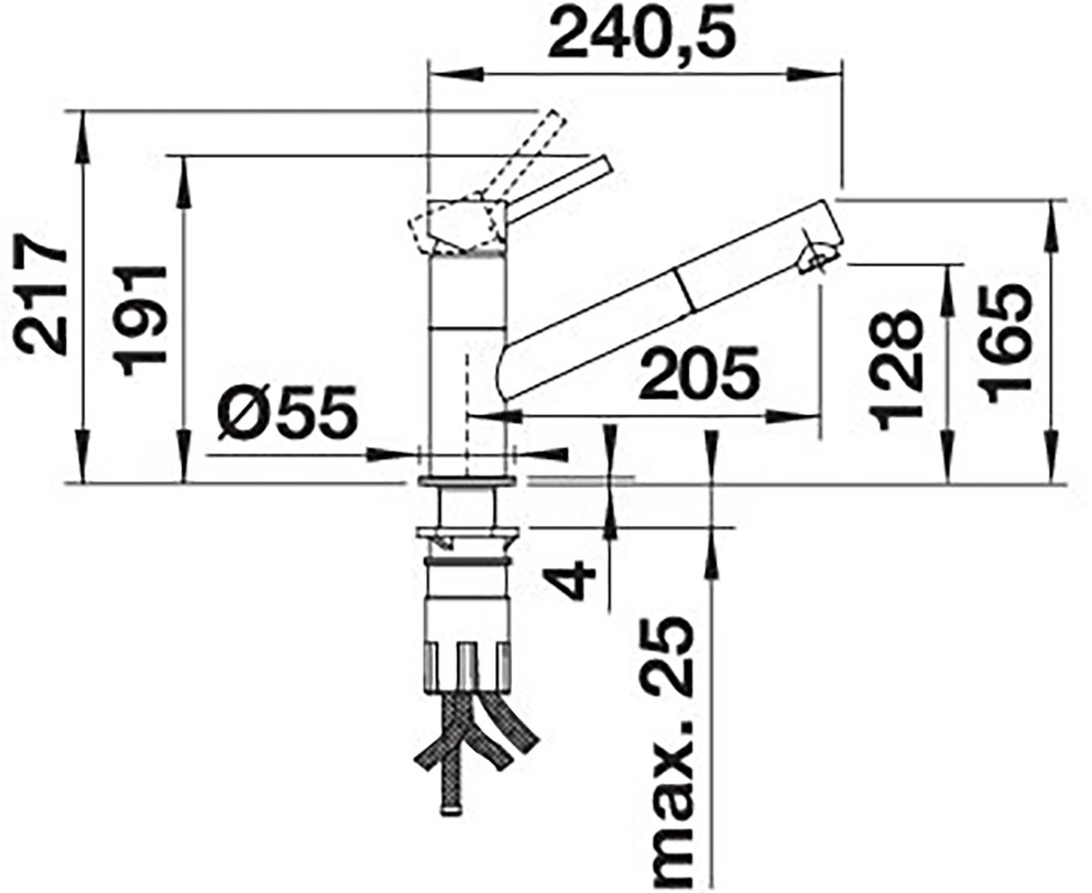 Spülen geeignet. Erweiterter Aktionsradius durch 120° schwenkbaren Auslauf.