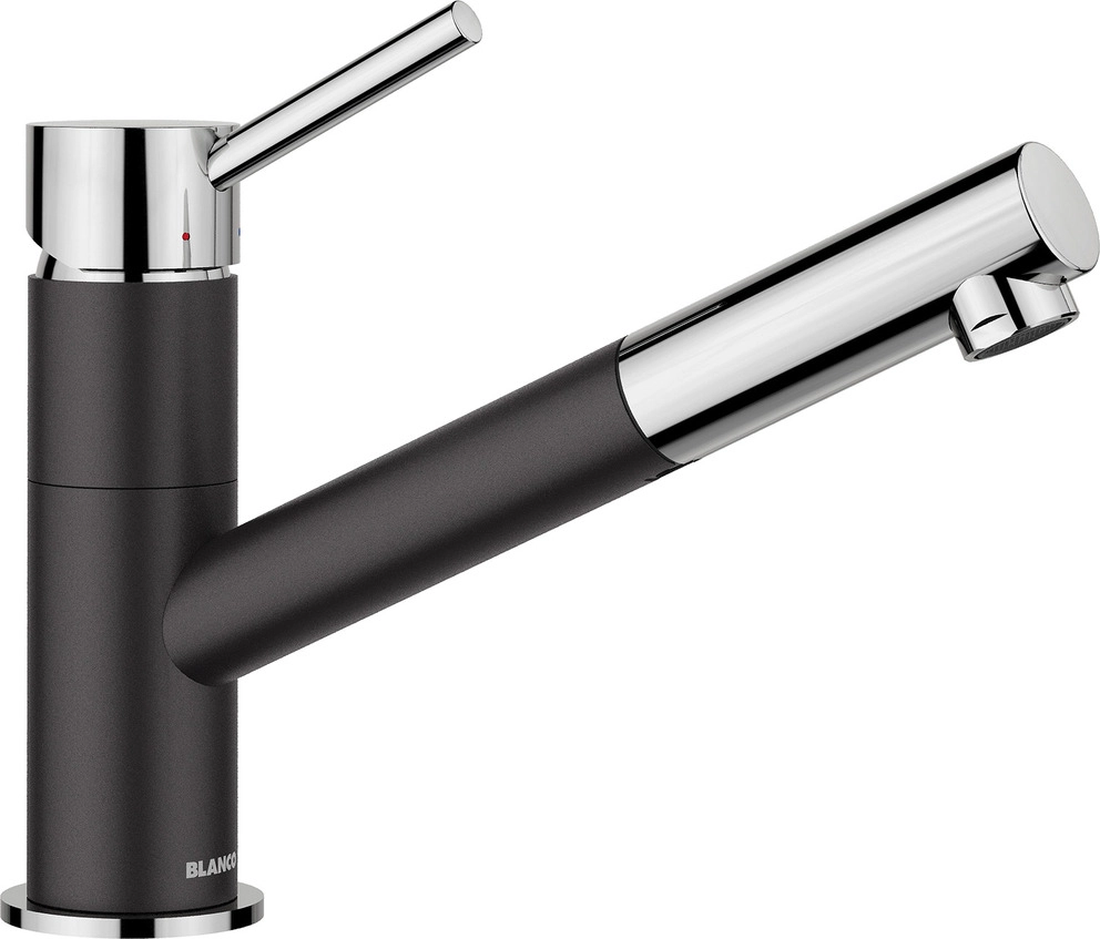 Schlanke Armatur in ästhetischem Design. Mit herausziehbarem Auslauf. Besonders für kompakte Spülen geeignet. Erweiterter Aktionsradius durch 120° schwenkbaren Auslauf.
