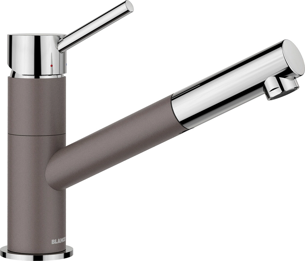 Schlanke Armatur in ästhetischem Design. Mit herausziehbarem Auslauf. Besonders für kompakte Spülen geeignet. Erweiterter Aktionsradius durch 120° schwenkbaren Auslauf.