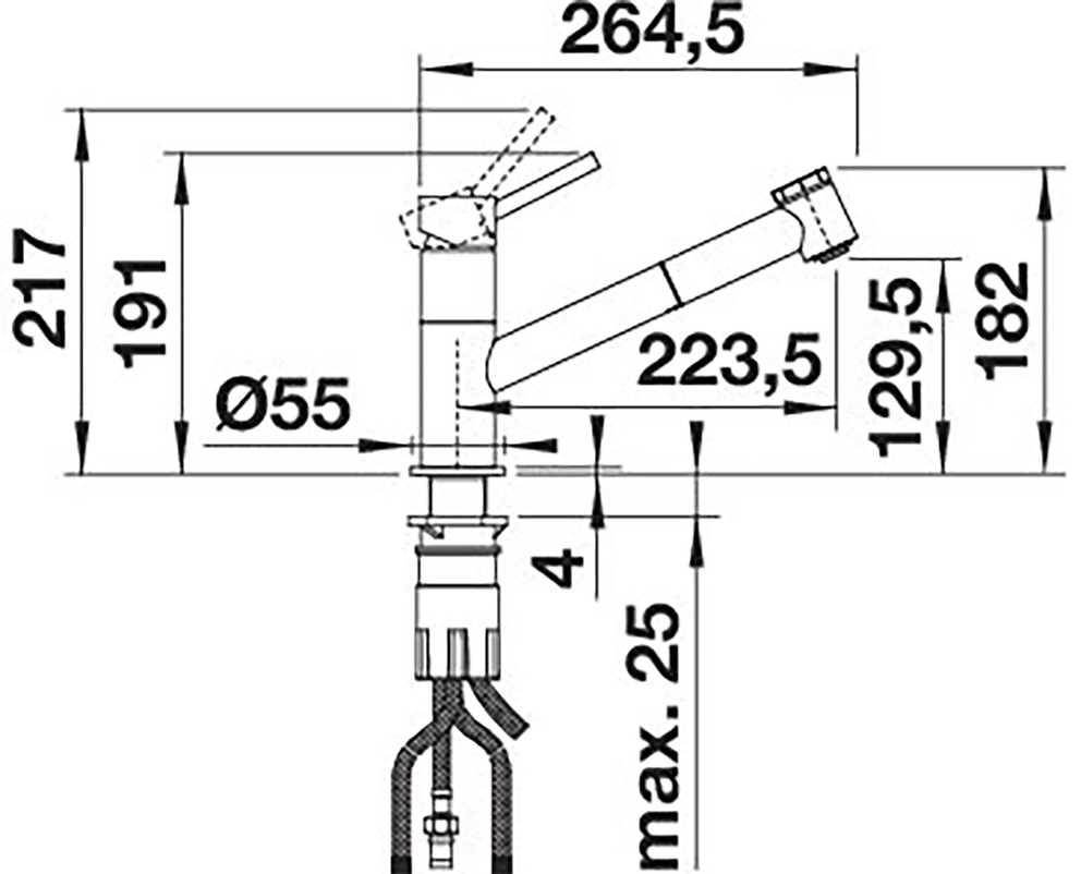 Schlanke Armatur in ästhetischem Design. Ausziehbarer Brauseschlauch mit doppeltem