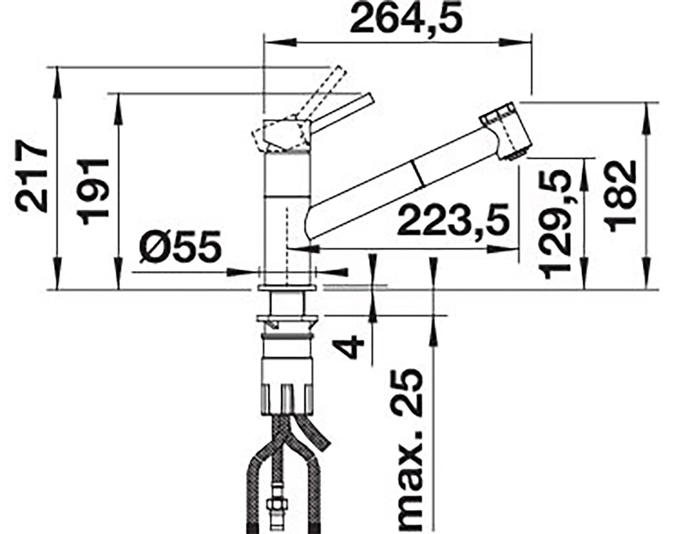 Schlanke Armatur in ästhetischem Design. Ausziehbarer Brauseschlauch mit doppeltem Strahlbild für mehr Reichweite und Komfort. Besonders geeignet für kompakte Spülen.