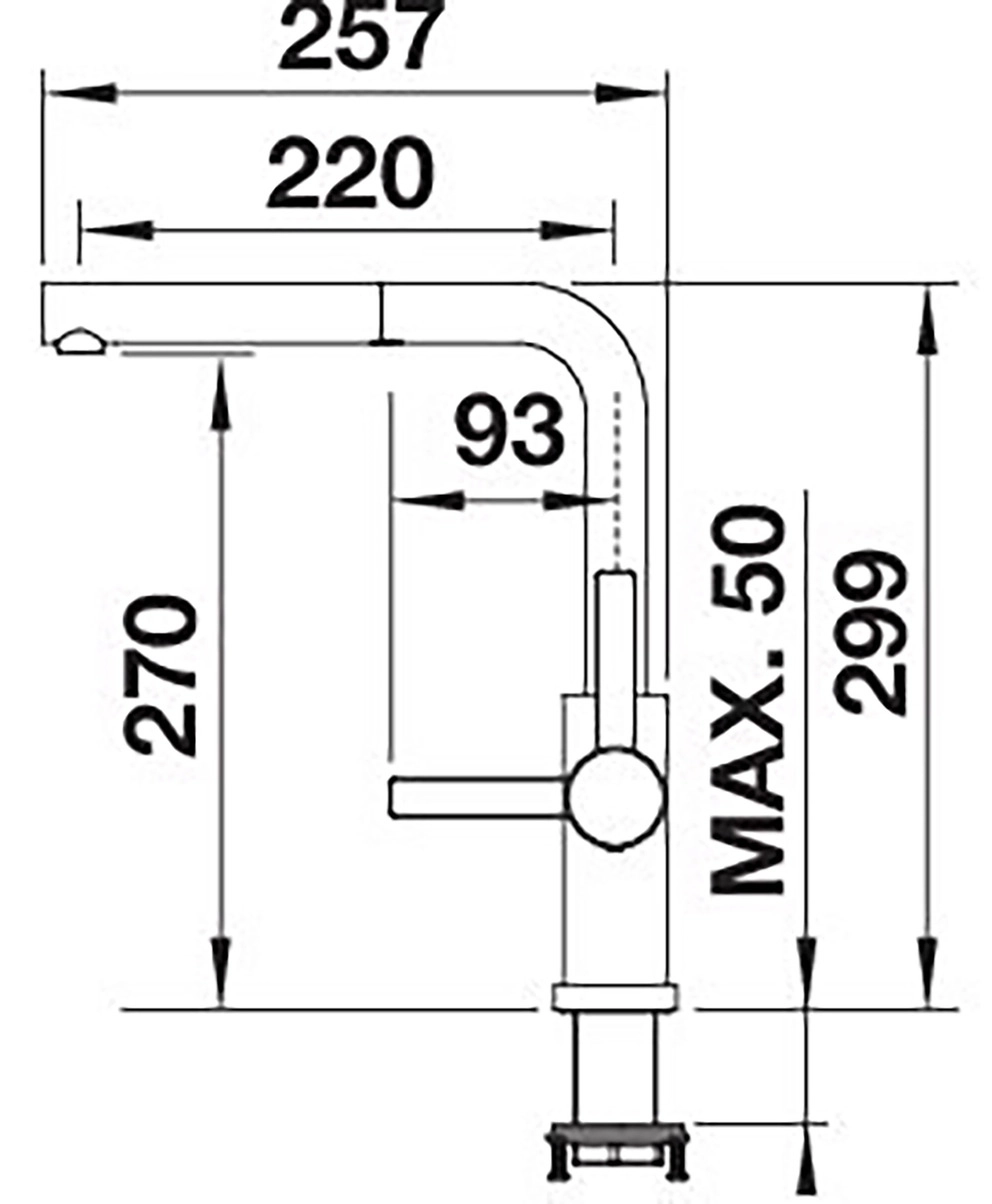 Nullstellung. Energiesparend: Grundeinstellung des Bedienhebels auf Kaltstart. Mindestabstand zwischen Spüle