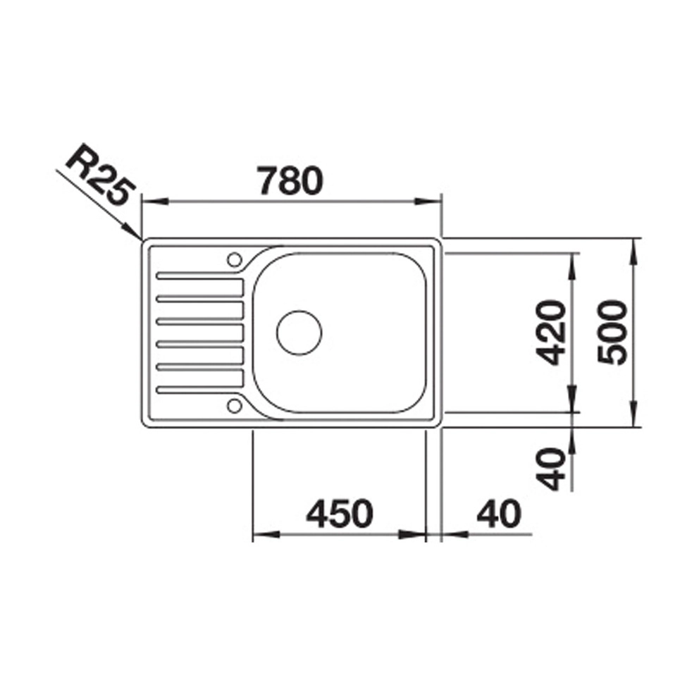 Einbau. Mit extra großem Becken. Kürzere Abtropffläche. Reversibel einbaubar. Mit 3 ½‘‘Edelstahl-Korbventil.
