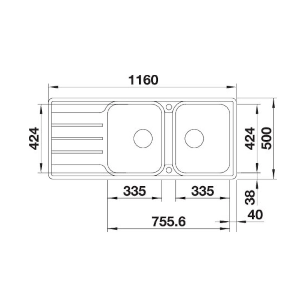 Moderne,klare Gestaltung. Großes Beckenvolumen mit zwei Becken. Großzügige Batteriebankund Abtropffläche.