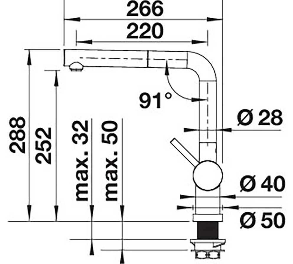 Für die Montage vor dem Fenster. Minimalistisches Design. Einfache Bedienung: senkrecht hochheben und zur Seite legen. Hoher Auslauf für leichtes Befüllen von Töpfen und Vasen.