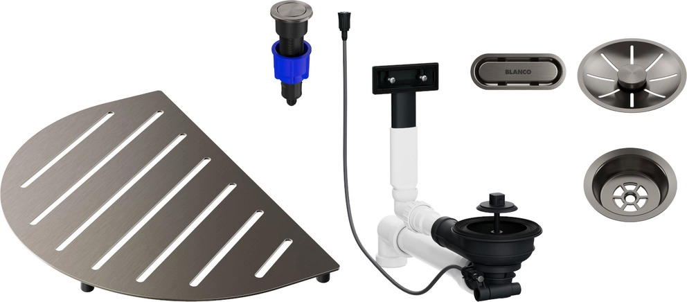 Enthält Ab- und Überlaufgarnitur inkl.Sichtteilen, Push Control und Grid in der gewählten Farbe.