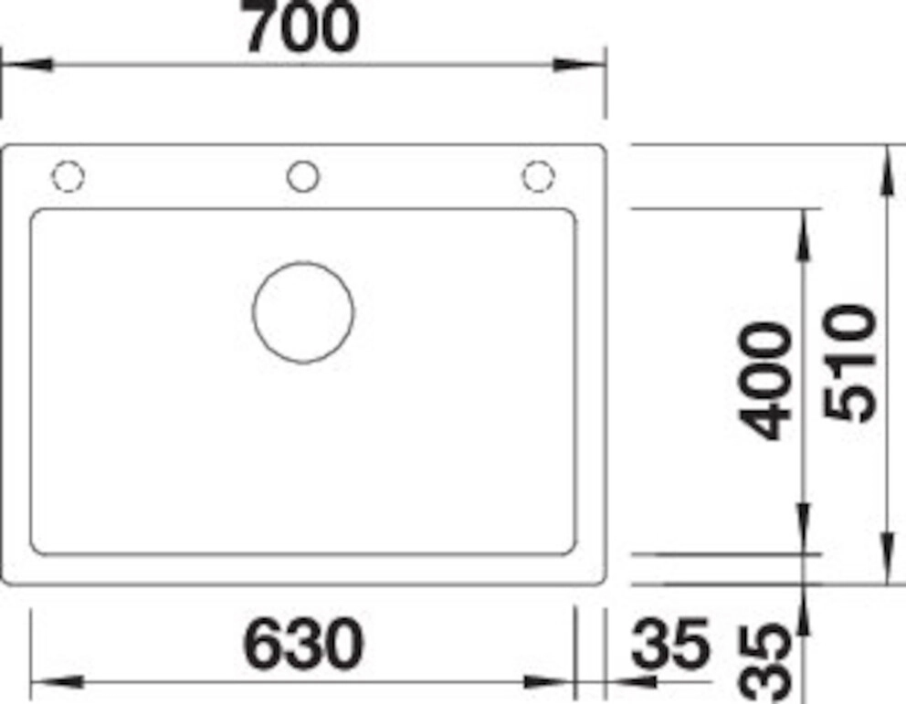 Hahnlöcher: 2 vorgefräste Bohrungen zum Durchschlagen, 1 fixe Bohrung, mittig