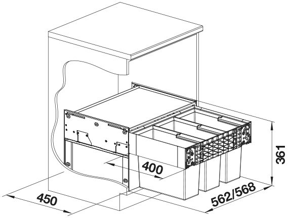 Auszugssystem zur Frontanbindung, Systemabdeckung,